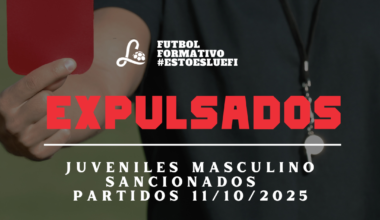 Leer más DDisciplina Sancionados Juveniles – Partidos del fin de semana del 11 de octubre de 2025porLUEFI16 octubre, 2025 Sobre los expulsados con 4 fechas de suspensión, se los llama a la reflexión para convivir de mejor…