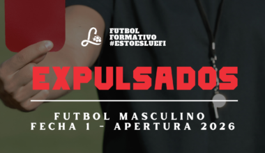 A continuación informamos los jugadores expulsados en la primera jornada de Juveniles Masculino en la cual los siguientes futbolistas tendrán estas sanciones disciplinarias, a cumplir en las fechas inmediatamente posteriores del presente torneo.