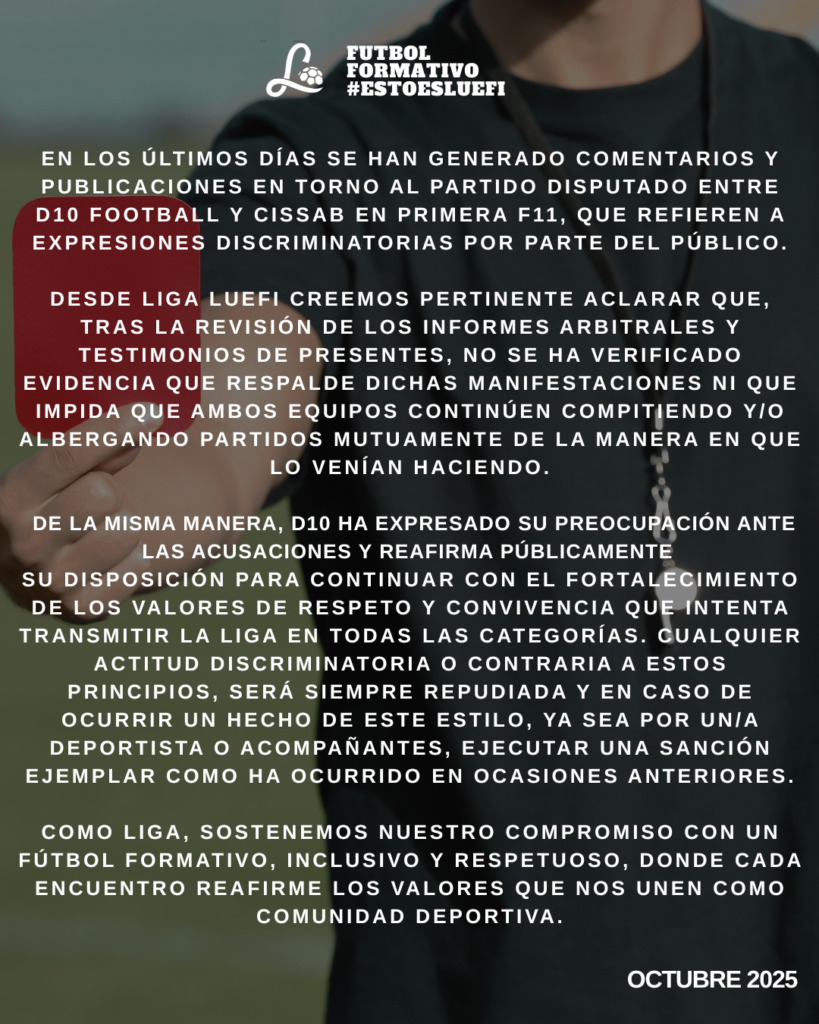BBlog Tribunal de disciplina – Aclaración sobre las acusaciones recientes porLUEFI30 octubre, 2025 Tags:expulsadosfutbol juvenilliga luefitribunal de disciplina LUEFI